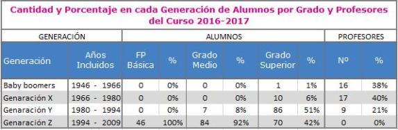 Ellos, y sus predecesores de la Generación Y (1980-1994), también apodados Millennials, que representan el 0%, de FP Básica; el 8%, de Grado Medio y el 51% de Grado Superior del total de matriculados en Decroly en el finalizado curso 2016-2017, son los candidatos a engrosar los recursos humanos de las empresas. Uno y otro colectivo está llamados a gestionar el cambio galopante de una sociedad mundializada, a liderar y a crear las mejores condiciones de vida, tanto para ellos mismos como para el conjunto de esta sociedad del siglo XXI.