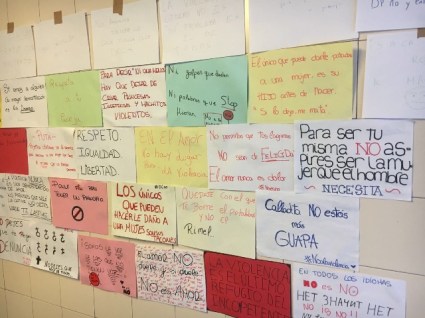 -H) La realización de talleres con motivo de la proclamación del Día Internacional contra la Violencia de Género, en los que han participado los alumnos de los veintidós ciclos formativos de FP Básica, Grado Medio y Grado Superior, coordinados por Susana Sainz-Pardo y por María Peña, el viernes 24.