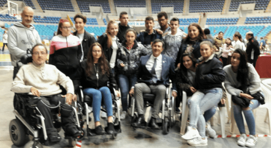 el 24 de noviembre, en el Palacio de Deportes de Santander, una jornada de sensibilización a escolares, a la que asistieron alumnos de 2º curso de Formación Profesional Básica de Decroly, acompañados de sus profesores Adela Saiz, Alfonso Diego y Blanca Díaz.