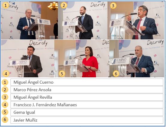 Entre los profesores que han dejado huella en Decroly, sin ánimo de excluir a alguno de los asistentes, quiero mencionar a Marcelino Lucio, artífice de la implatación de los estudios de Informática en Decroly; Carlos Omaña, José Antonio Fernández, Luis Mª Martín, Álvaro Fernández, Belén Goméz, Maite Muñiz, Natalia Solana, Pablo Álvarez,… Alfredo de la Presa y José Manuel Suárez, pioneros en Cantabria y en España por su participación en un proyecto de movilidad del programa Erasmus para profesores de Formación Profesional; Encarna Lanza, Jorge Narezo, Cristina Álvarez, Cristina Arenas, Gema Blanco, Mann Sierra, Rodrígo González, Javier Herrero,… Y ¿cómo no? mencionar a Chiqui Bárcena, histórica del grupo de PAS. ¡Gracias por estar aquí!