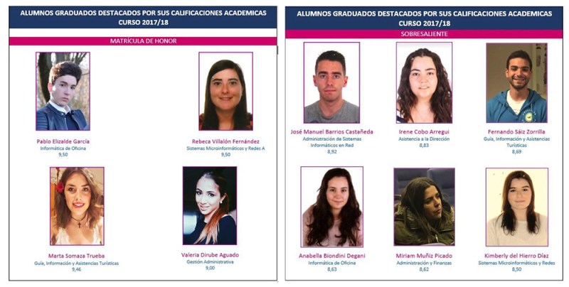 A continuación, los estudiantes que han obtenido una calificación media de sobresaliente, igual o superior a 8.50 puntos, recibieron un regalo simbólico de manos del director, Francisco Javier Muñiz Bárcena. Los beneficiarios fueron: