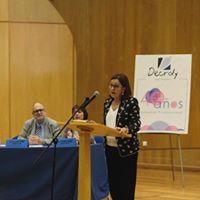 En representación de las decenas de empresas con las que Decroly mantiene convenios de colaboración para la realización de las prácticas del módulo Formación en Centros de Trabajo (FCT), para el desarrollo de proyectos de cooperación en materia de Formación Profesional para el Empleo (FPE) y para la detección de necesidades formativas en los distintos sectores productivos, concurrió María Eugenia Barrio, exalumna y madre de exalumno.