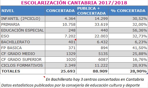 Sin embargo, como decía anteriormente, el sistema educativo en Cantabria goza de buena salud, en general. Nada más tenemos que analizar los datos estadísticos de escolarización del curso pasado para comprobar que la red de centros educativos sostenida con fondos públicos proporciona una cobertura total de las enseñanzas no universitarias en todo el territorio.