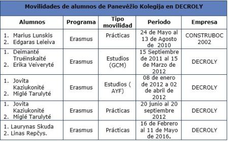 Panevėžio Kolegija (Universidad de Ciencias Aplicadas de Panevezys) es un centro de educación superior lituano con el que Decroly mantiene una excelente relación desde el año 2005. El punto de partida se sitúa en una Visita de Estudio del director de Decroly, Fco. Javier Muñiz Bárcena, a Sophia, Bulgaria, en 2004. Allí surgió la idea de fortalecer las relaciones interinstitucionales de ambas entidades que darían paso a futuras colaboraciones en los distintos programas europeos, desde los Proyectos Piloto, hasta aquellos otros del PAP 2007-2013 y del actual programa Erasmus+ 2014-2020.