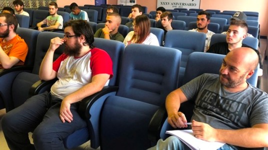 Concluida mi presentación y el subsiguiente coloquio, el jefe de estudios, Pedro Cuesta, procedió a informar a los estudiantes sobre asuntos operativos a tener en cuenta en el comienzo de curso. Posteriormente, cada grupo se reunió con su tutor y miembros del equipo docente para recibir los horarios provisionales y las primeras orientaciones e indicaciones de carácter general en estas fechas.