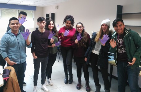 El objetivo de este día es denunciar la violencia que se ejerce sobre las mujeres en todo el mundo y reclamar políticas en todos los países para su erradicación. El Centro del Profesorado de Cantabria, en el seminario celebrado el pasado octubre al que asistieron los coordinadores de igualdad de los distintos centros educativos, propuso la elaboración de unas manos moradas que reflejaran el lema: Ama, Respeta, Vive.