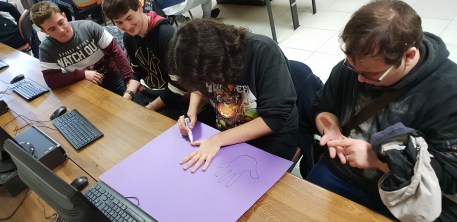 Una vez confeccionadas las manos, se han pegado en las paredes y ventanas del centro, creando un “rincón” de lucha contra la violencia hacia las mujeres. En ese espacio, los alumnos han grabado un vídeo para difundir el lema asumido por toda la comunidad educativa de Decroly: Ama, Respeta, Vive.