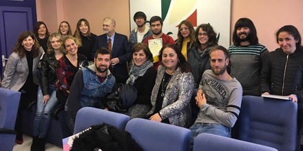 El pasado martes, 12 de marzo, tuvo lugar la ceremonia de entrega de reconocimientos a los premiados en este XI Certamen Decroly Digital en el Salón de Actos del centro. El evento, presidido por el director, Fco. Javier Muñiz, contó con la participación de Carmen Frechoso, técnico docente de la Unidad Técnica de Innovación y Centros Educativos de la Consejería de Educación, Cultura y Deporte del Gobierno de Cantabria. La “maestra de la ceremonia” fue la estudiante de primer curso de grado superior Asistencia a la Dirección (ADIR) Mónica Bóveda. Asistió, asimismo, una representación del profesorado y la mayor parte de los sesenta y cinco alumnos que presentaron sus obras al concurso en esta edición.