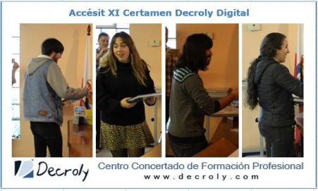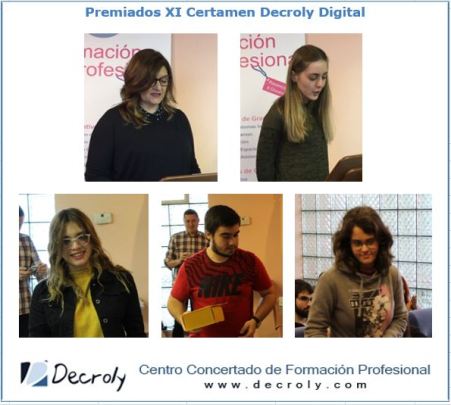 El jurado del XI Certamen Decroly Digital ha estado formado por tres profesores del departamento de Hostelería y Turismo, Pablo Álvarez; Administración y Gestión, Adela Saiz, e Informática y Comunicaciones, Nieves Marlasca. Además, por la coordinadora de Decroly Digital, Blanca Díaz, y por los dos alumnos representantes en el Consejo