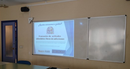 Los alumnos de primer curso de los ciclos formativos de Formación Profesional Básica Servicios Administrativos (SAD), Informática de Oficina (IO) e Informática y Comunicaciones (IC) asistieron recientemente al Taller de Sensibilización en Adicciones impartido por Javier López, de la Asociación Proyecto Hombre, en las dependencias de Decroly en Perines.