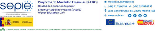 Así nos informó la Unidad de Educación Superior del Servicio Español para la Internacionalización de la Educación (SEPIE), organismo Autónomo, adscrito al Ministerio de Universidades, que actúa como Agencia Nacional para la gestión, difusión, promoción y estudios de impacto del programa integrado Erasmus+ 2014-2020 en el ámbito de la Educación y la Formación, responsable de la gestión de los Proyectos de Movilidad