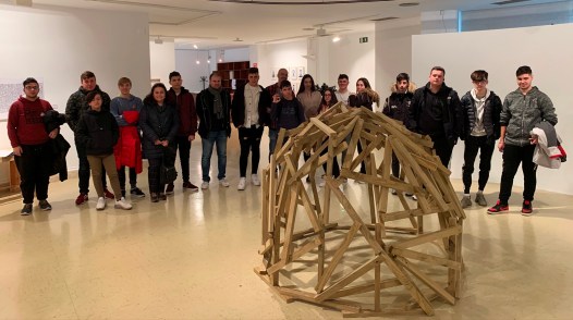 El IES Ricardo Bernardo de Solares ha estado representado por los alumnos de Grado Medio de Carpintería y Mueble. Estos jóvenes artistas han creado una estructura escultórica en forma de libro interactivo y otra a modo de refugio. A la primera los visitantes podían añadir palabras sobre lo que supone para ellos la migración. Un alumno de Decroly de Informática de Oficina contribuyó con la palabra “camino” queriendo destacar la idea de tránsito hacia una vida mejor.