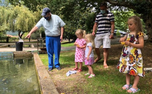 Toda la familia disfrutamos de lo lindo en la piscifactoría. Nos divertimos. Las niñas se emocionaron mientras sus padres y yo mismo las mostrábamos cómo pescar las truchas. Alana, Olivia y Sofia cogieron una caña cada una y un bote de cebo que Ben y Tracy colocaban con amor paterno en los respectivos anzuelos. En suma, este Día de los Abuelos 2020 permanecerá por siempre en su recuerdo.