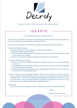 En este coctel educativo adquiere un protagonismo sin igual el espíritu innovador y emprendedor, alma mater de la acción educativa de este centro de Formación Profesional. Para ello, Decroly fomenta el aprendizaje basado en proyectos, la cultura del trabajo cooperativo en equipo, iniciativas que faciliten el aprendizaje de otros idiomas, el fortalecimiento de las competencias digitales, el protagonismo permanente de las tecnologías de la información y de las comunicaciones (TIC) en todos los procesos de enseñanza y aprendizaje, la interiorización de un mensaje claro y contundente sobre el aprendizaje permanente en la sociedad mundializada y altamente competitiva en la que nos ha tocado vivir.