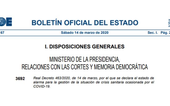 En pocas semanas, casi sin interiorizar los ciudadanos “la que se nos venía encima”, pasamos de un escenario “controlado”, “no pasa nada”, según palabras más o menos textuales del Dr Simón en sus cotidianas ruedas de prensa, a la publicación del Real Decreto 463/2020, de 14 de marzo, por el que el Ejecutivo declara el Estado de Alarma para la gestión de la situación de crisis sanitaria ocasionada por el COVID-19.