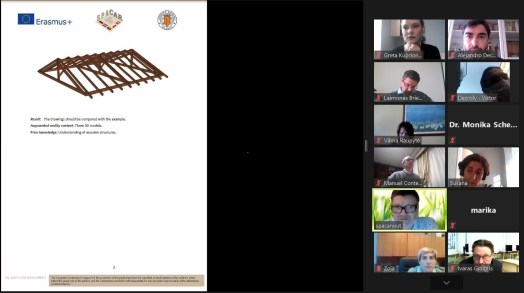 Los tres socios a cargo de las ponencias recorrieron todos los ejercicios implementados, recibiendo la pertinente retroalimentación del resto de organizaciones. Se consiguió evaluar satisfactoriamente todos los trabajos que estaban dentro del alcance propuesto inicialmente: Cutting Geometrical Solids with Planes, Intersections of Geometrical Surfaces, Orthographic projections, Construction of Elements of Machine Parts, Architectural and Construction Drawing.