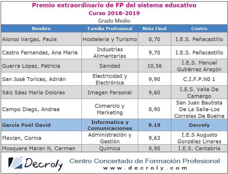 5 Premio extraordinario de FP del sistema educativo GM 18-19