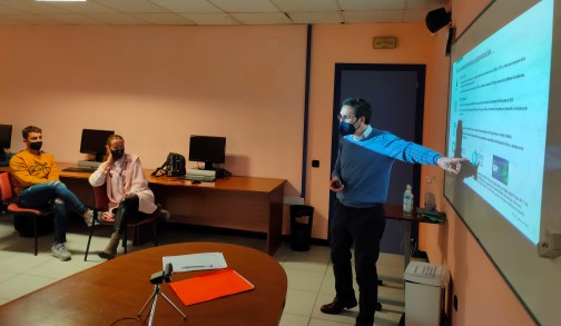 La ponencia se celebró en el entorno del aula 1 de la sede de Dávila, con presencia del alumnado del módulo Gestión Avanzada de la Información y de su profesor Julio Doporto. Fue seguida, en directo, a través de Teams, desde otras dos aulas por los alumnos de los grupos de Administración y Finanzas (AYF) y de Guía, Información y Asistencias Turísticas (GIAT) antes referidos, en compañía de sus respectivos profesores, Álvaro Peña y Cristina Ortega.